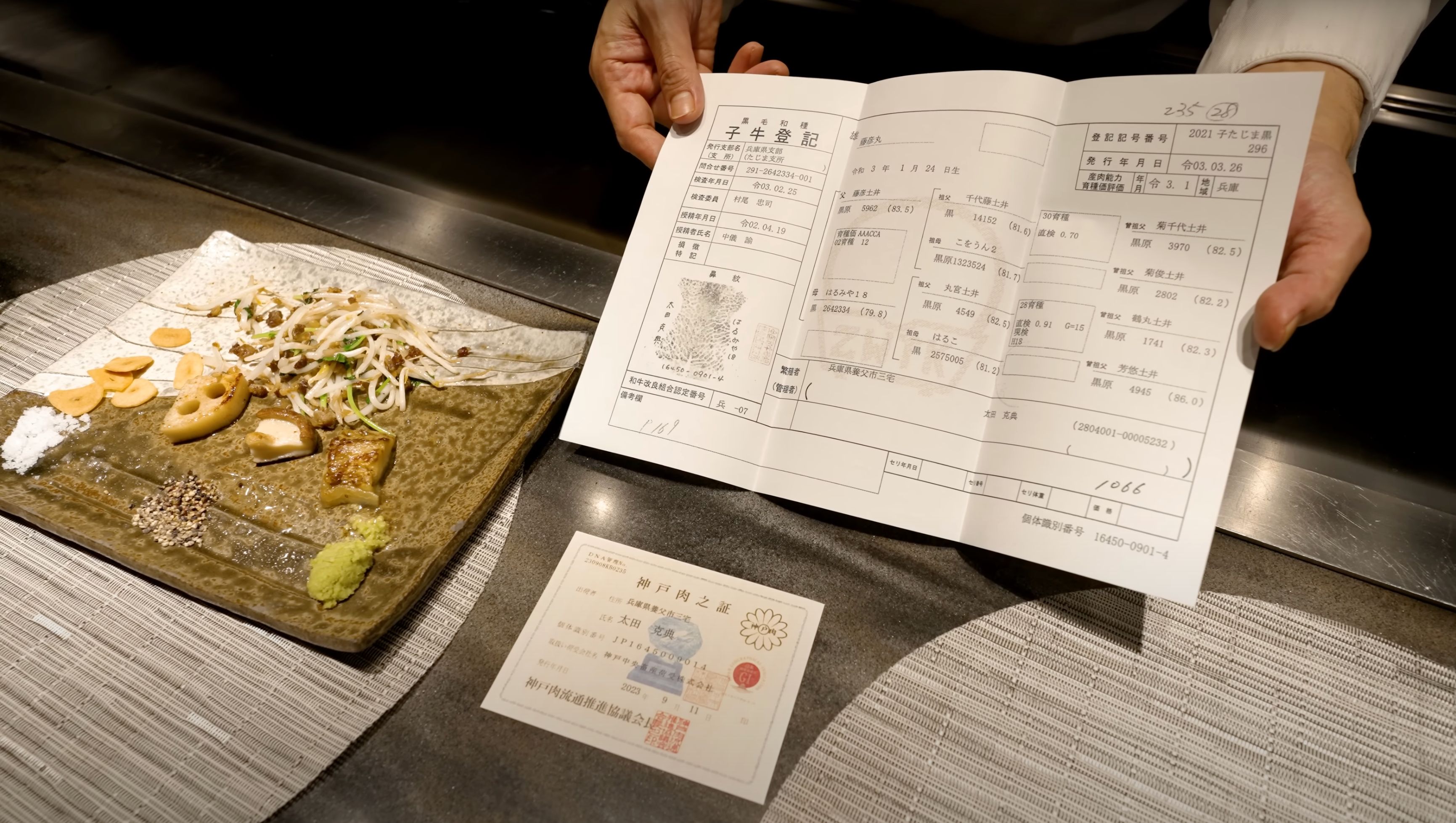 Sự minh bạch của bò Kobe không chỉ dừng lại ở con dấu. Mỗi chú bò Tajima thuần chủng đều có một "hồ sơ lý lịch" riêng, hay còn gọi là Giấy chứng nhận bò Kobe cá nhân. Giấy tờ này ghi lại đầy đủ: