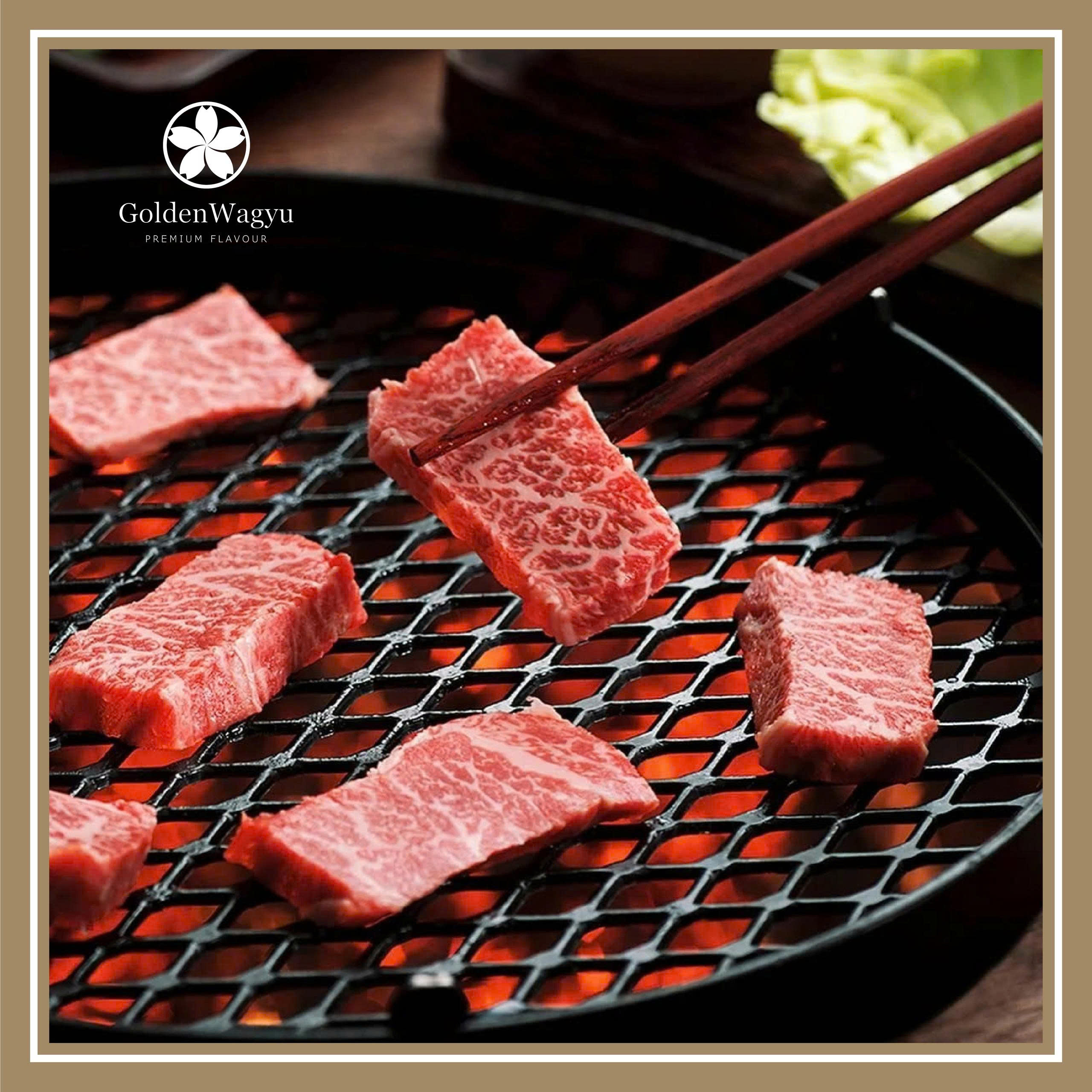 Hãy thử tưởng tượng một buổi tối cuối tuần, bạn bè và người thân cùng nhau sum vầy quanh bếp nướng. Trên vỉ nướng là những lát thịt bò Golden Wagyu A5 thượng hạng, vân mỡ cẩm thạch tuyệt đẹp. Chỉ cần vài giây trên lửa, miếng thịt tan chảy trên đầu lưỡi, đánh thức mọi giác quan. Hương thơm nồng nàn quyện trong tiếng tí tách của mỡ và tiếng reo hò, cười nói của mọi người.