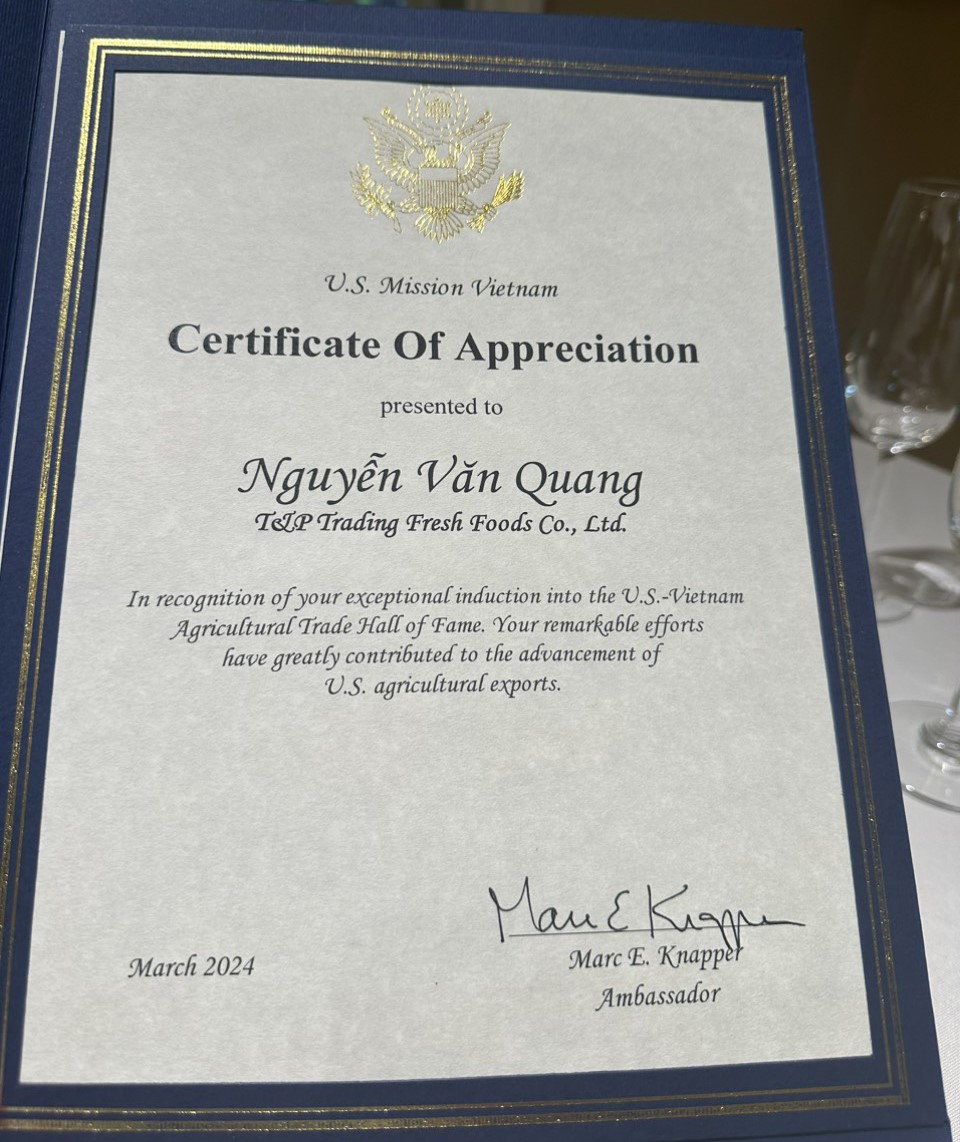 T&P FreshFoods vinh dự nhận “Giải thưởng Danh Dự vì đóng góp cho Quan Hệ Thương Mại Nông Sản Hoa Kỳ - Việt Nam”