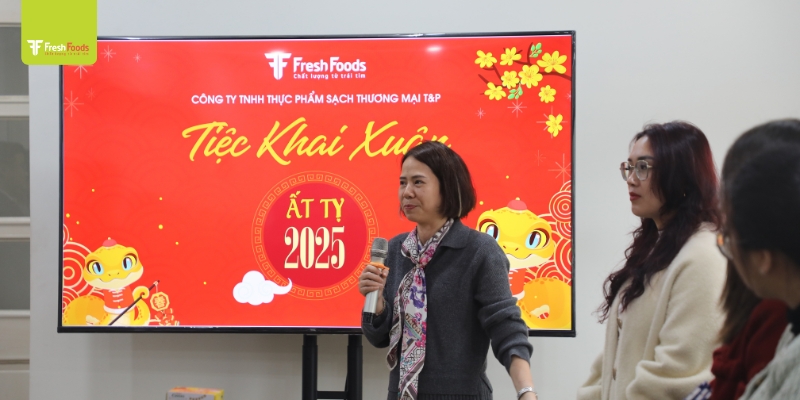 Bước sang năm 2025, Bà. Võ Thị Tô Hải – Phó Giám đốc Công ty cũng có đôi lời phát biểu: Năm 2025 T&P FreshFoods đặt ra những mục tiêu phát triển mạnh mẽ hơn, với mong muốn tiếp tục khẳng định vị thế thương hiệu trên thị trường thực phẩm sạch. Công ty cam kết không ngừng cải tiến, nâng cao chất lượng sản phẩm đối với các dòng sản phẩm sản xuất và mở rộng hệ thống nhập khẩu và phân phối đối với các dòng sản phẩm thực phẩm nhập khẩu nhằm mang đến nhiều trải nghiệm tốt hơn cho khách hàng.