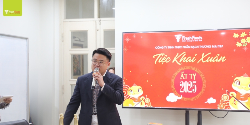 Trong bài phát biểu khai xuân, đại diện T&P FreshFoods Ông. Nguyễn Văn Phương – Phó giám đốc Công ty đã có những chia sẻ chân thành về những thành tựu đáng tự hào trong năm 2024. Công ty đã không ngừng phát triển, mở rộng thị trường và mang đến nhiều sản phẩm chất lượng, đáp ứng nhu cầu ngày càng cao của khách hàng. Đặc biệt, sự ủng hộ của khách hàng cùng với tinh thần làm việc tận tâm của đội ngũ nhân sự đã giúp T&P FreshFoods đạt được những cột mốc đáng nhớ. Chào đón năm mới 2025 hy vọng tinh thần đoàn kết T&P FreshFoods ngày càng được phát huy lớn mạnh hơn nữa nhằm mang đến những dòng sản thực phẩm nhập khẩu tươi ngon nhất, chất lượng nhất phục vụ thị trường Việt một cách tốt nhất.