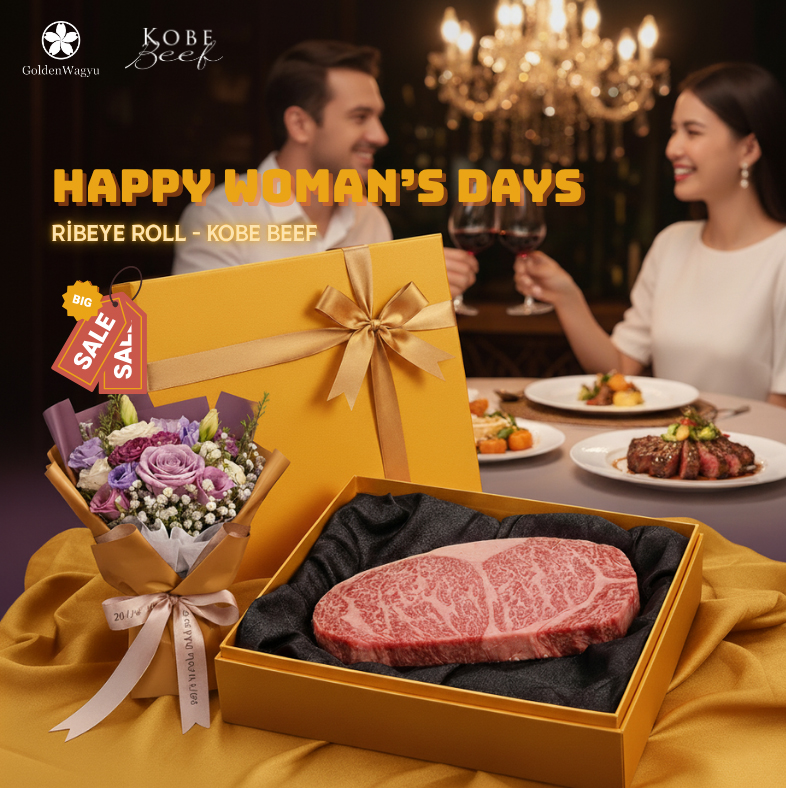 Nhân dịp đặc biệt này, Golden Wagyu mang đến ưu đãi giới hạn dành cho các phần Ribeye Kobe. Hãy đảm bảo món quà tinh tế này đến tay người phụ nữ bạn thương đúng lúc!