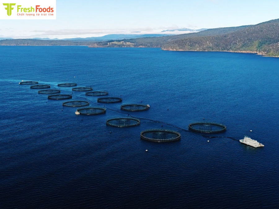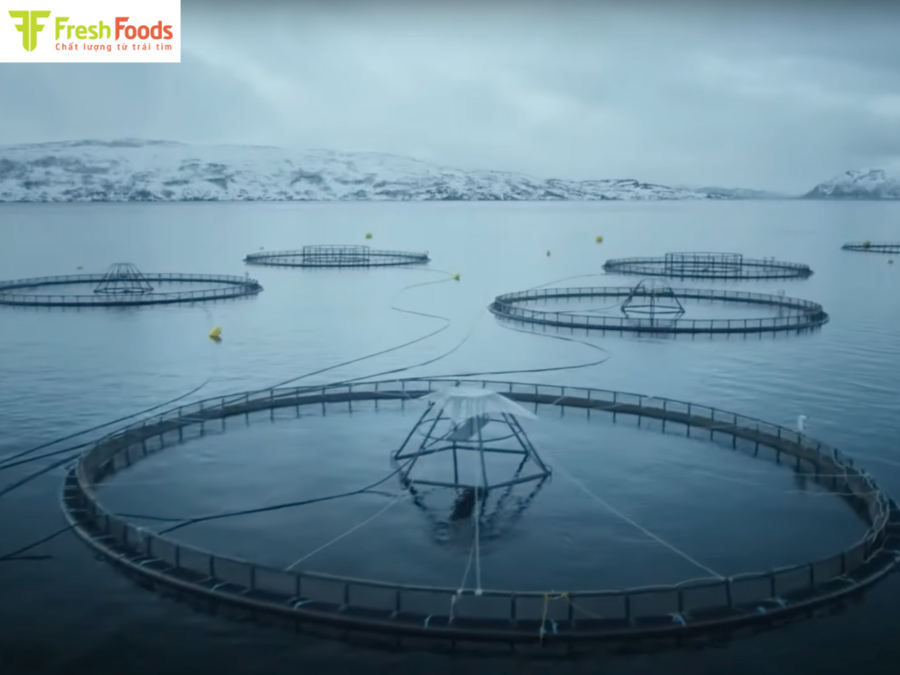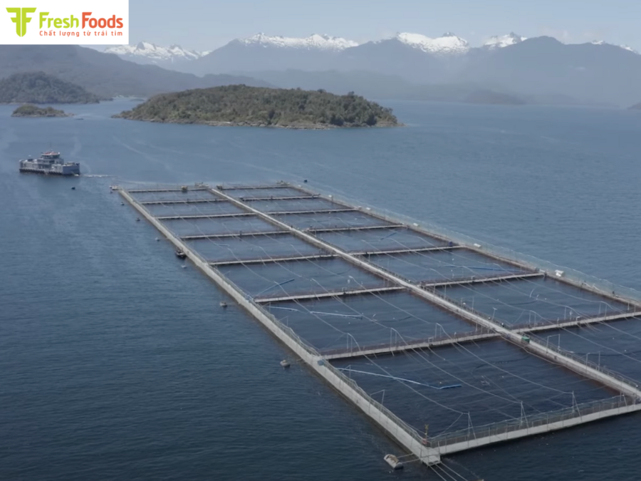 Ứng dụng công nghệ nuôi cá hồi tiên tiến với hệ thống kiểm soát nghiêm ngặt.