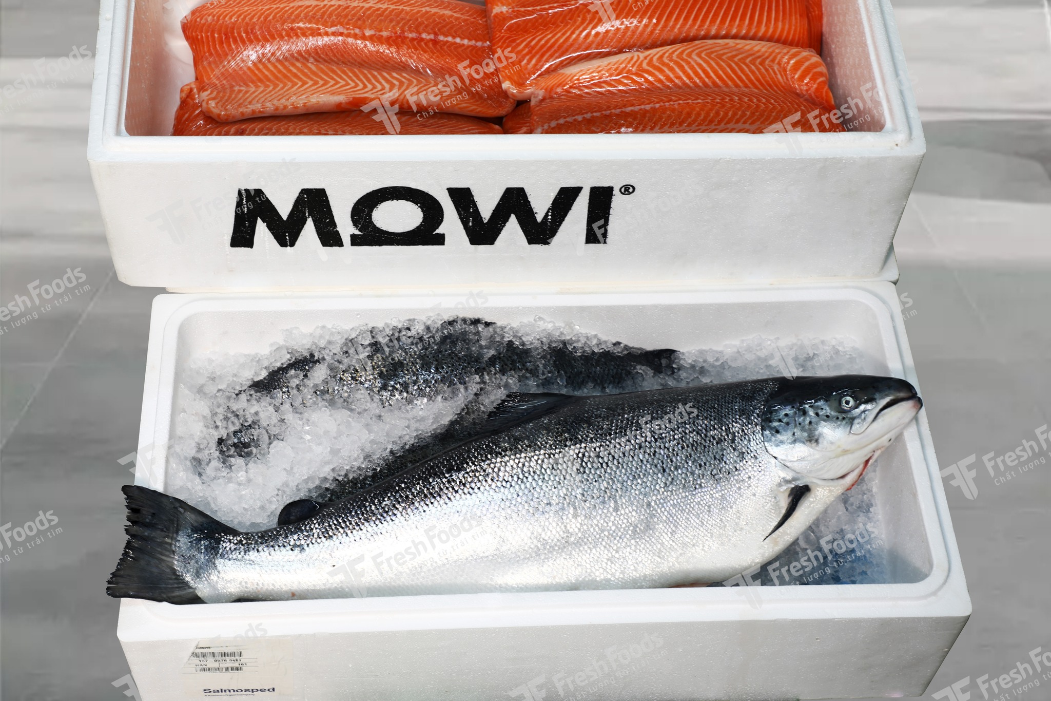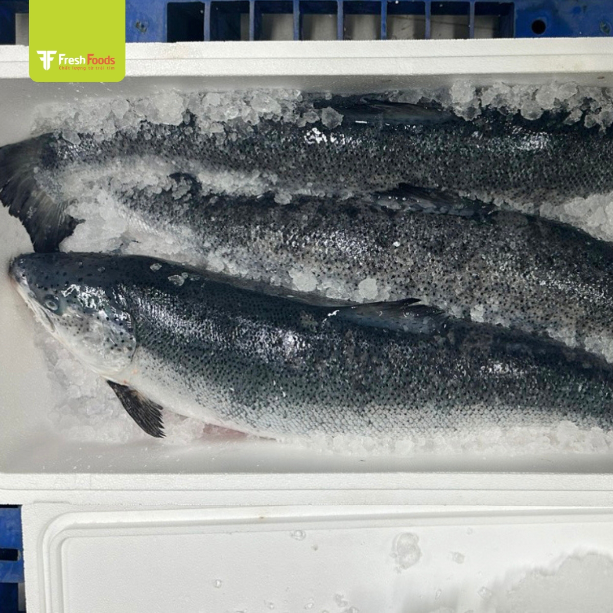 Cá hồi được đóng gói trong thùng cách nhiệt chuyên dụng, duy trì nhiệt độ lý tưởng trong suốt quá trình vận chuyển.