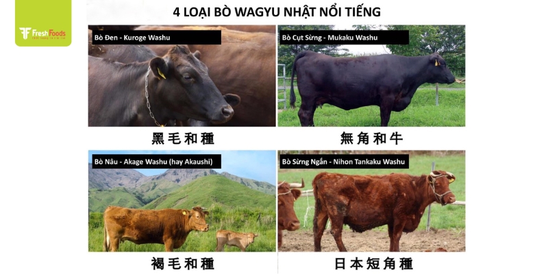 4 loại bò Wagyu của Nhật Bản: bò đen, bò cụt sừng, bò nâu, bò sừng ngắn