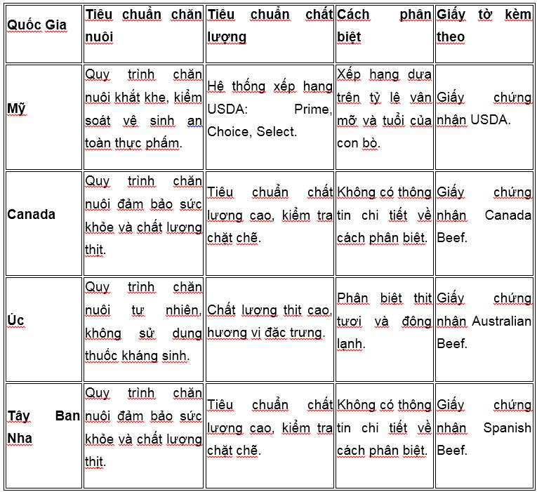 Thịt bò Tây Ban Nha đặc trưng với hương vị đậm đà và đa dạng, thường được chăn nuôi theo cách truyền thống và được ưa chuộng tại nhiều nhà hàng châu Âu. Sản phẩm này không chỉ mang đến trải nghiệm ẩm thực mới lạ mà còn đảm bảo chất lượng và an toàn cho người tiêu dùng.
