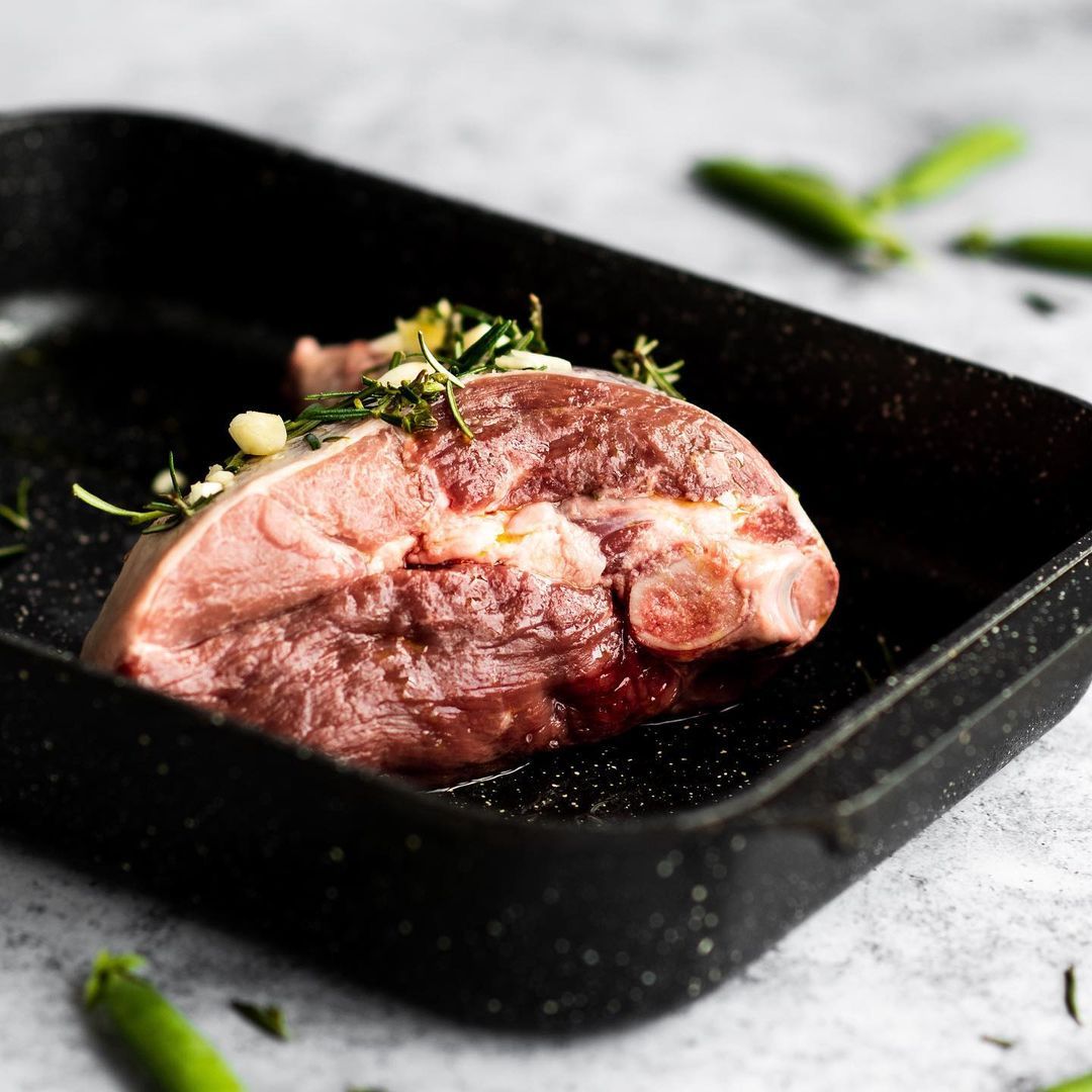 Đùi cừu là một trong những phần cắt linh hoạt nhất và được sử dụng rộng rãi của con cừu. Đùi cừu có thể để nguyên xương để nướng, lọc xương để cuộn hoặc chẻ nhỏ thành các phần roast, steak và chop. Đùi cừu có xương (Leg Bone-in) thường có lớp mỡ mỏng được giữ lại để giúp thịt ẩm và mọng hơn trong quá trình nấu. Xương không chỉ giúp giữ cấu trúc thịt mà còn góp phần tăng hương vị khi nướng trong thời gian dài. Đây là lựa chọn rất phù hợp cho món đùi cừu nướng kiểu truyền thống, đặc biệt trong các bữa ăn gia đình hoặc buffet.